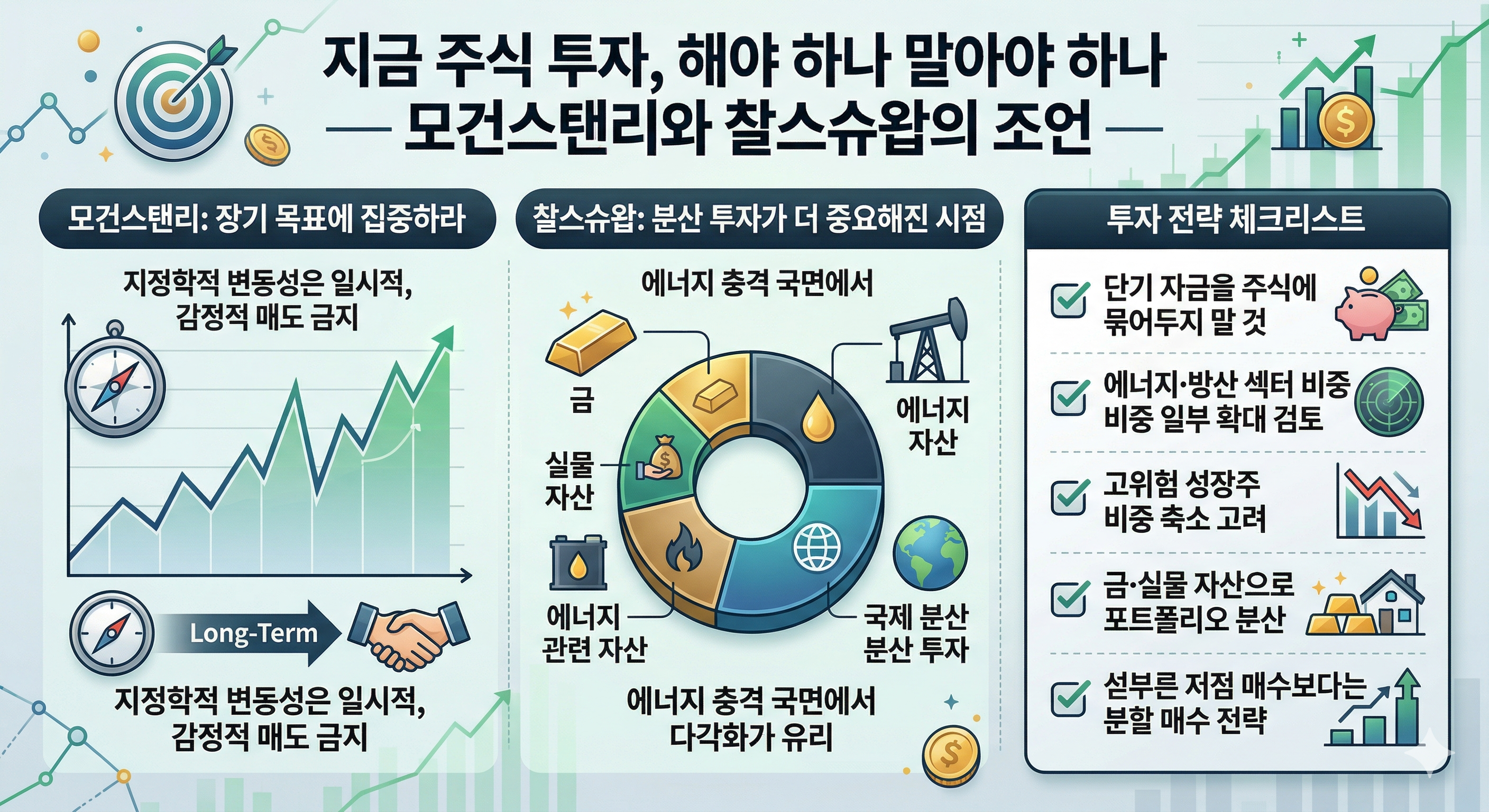 불안한 시장에서 투자자가 가장 많이 하는 실수는 감정적 결정입니다. 글로벌 투자 기관들은 지금 어떤 조언을 내놓고 있을까요?