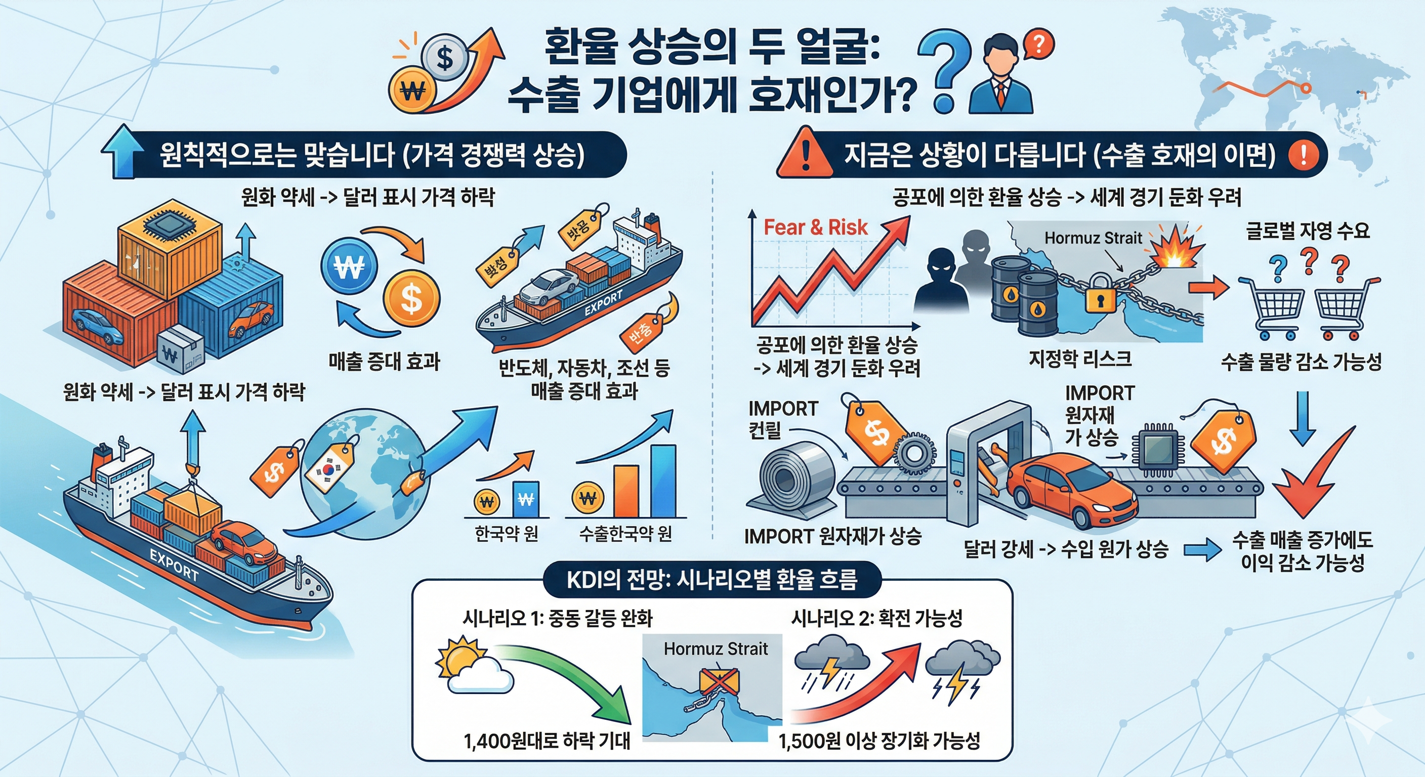 "환율이 오르면 수출 기업이 유리하다"는 말은 익숙합니다. 그런데 지금처럼 유가 급등과 함께 오는 환율 상승은 다릅니다.
